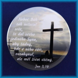 Magnetek s textem - prům.5cm. Neboť Bůh tak miloval svět,že dal svého jediného Syna,aby žádný,kdo v něho věří,nezahynul,ale měl život věčný.Jan 3,16. Při větší objednávce domluva předem. celý popis